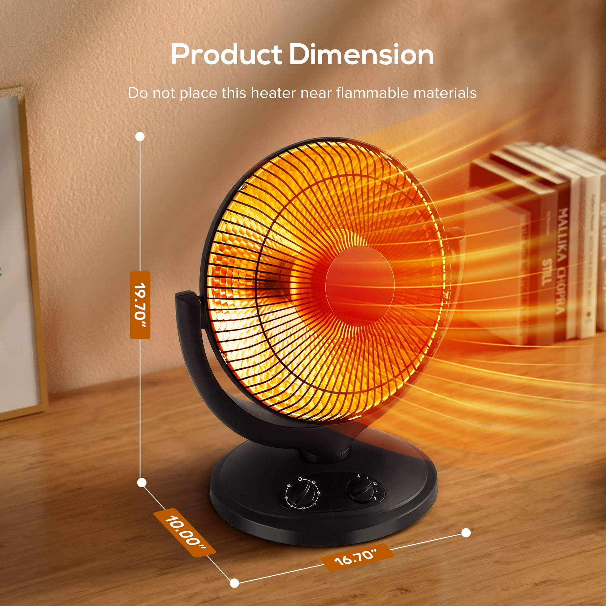Auseo Radiant Dish Heater, 400W/800W, Oscillating Space Heater with Timer, Overheat and Tip-over protection