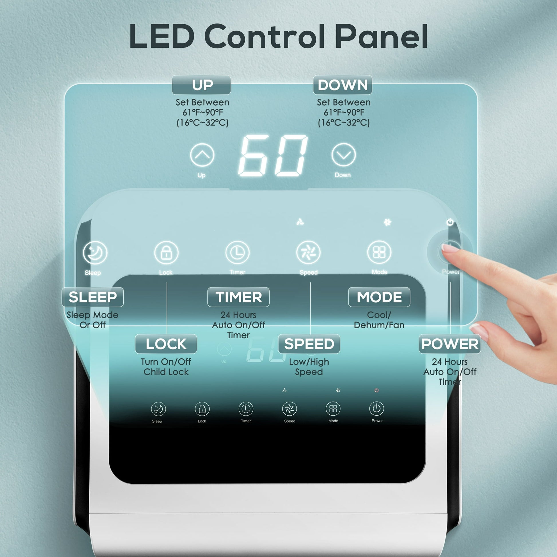 【3-in-1 FUNCTIONALITY&EASY USE】-Our air conditioner combines cooling/dehumidifying/fan modes and has a smart LED display for touch operation and watching the temperature display, it will automatically shut off when the tank is full and will restart automatically when the power goes out.