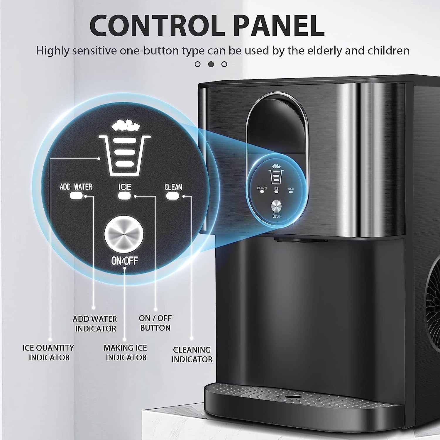 - [Easy Self-Cleaning] Maintenance is a breeze with the self-cleaning function. Simply press the "ON/OFF" button for 5 seconds to activate a 10-minute cleaning cycle, ensuring your ice maker stays in top condition with minimal effort.
