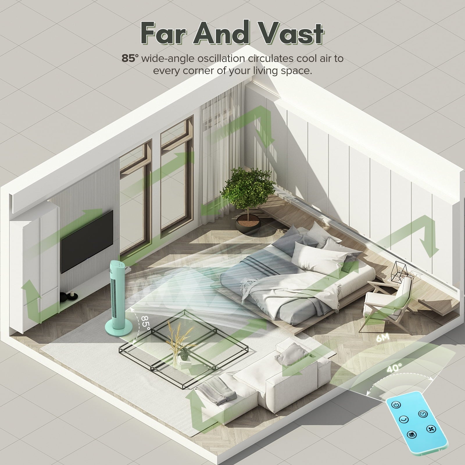 Auseo Tower Fan for Bedroom, 30" Portable,85° Oscillating Fans with 3 Speeds, 15H Timer, Normal/Natural/Sleep 3 Fan Modes, Freestanding Tower Fans, Green