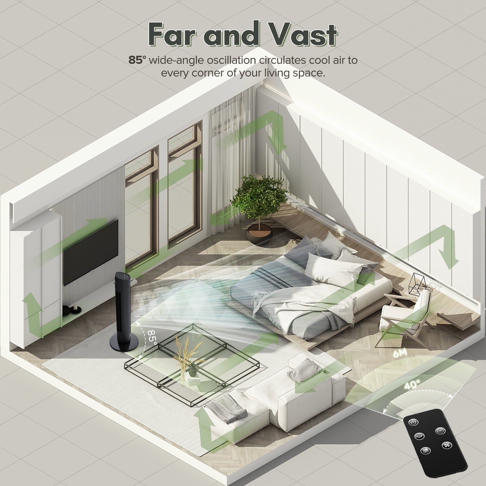 Auseo Tower Fan for Bedroom, 30" Portable,85° Oscillating Fans with 3 Speeds, 15H Timer, Normal/Natural/Sleep 3 Modes,Black